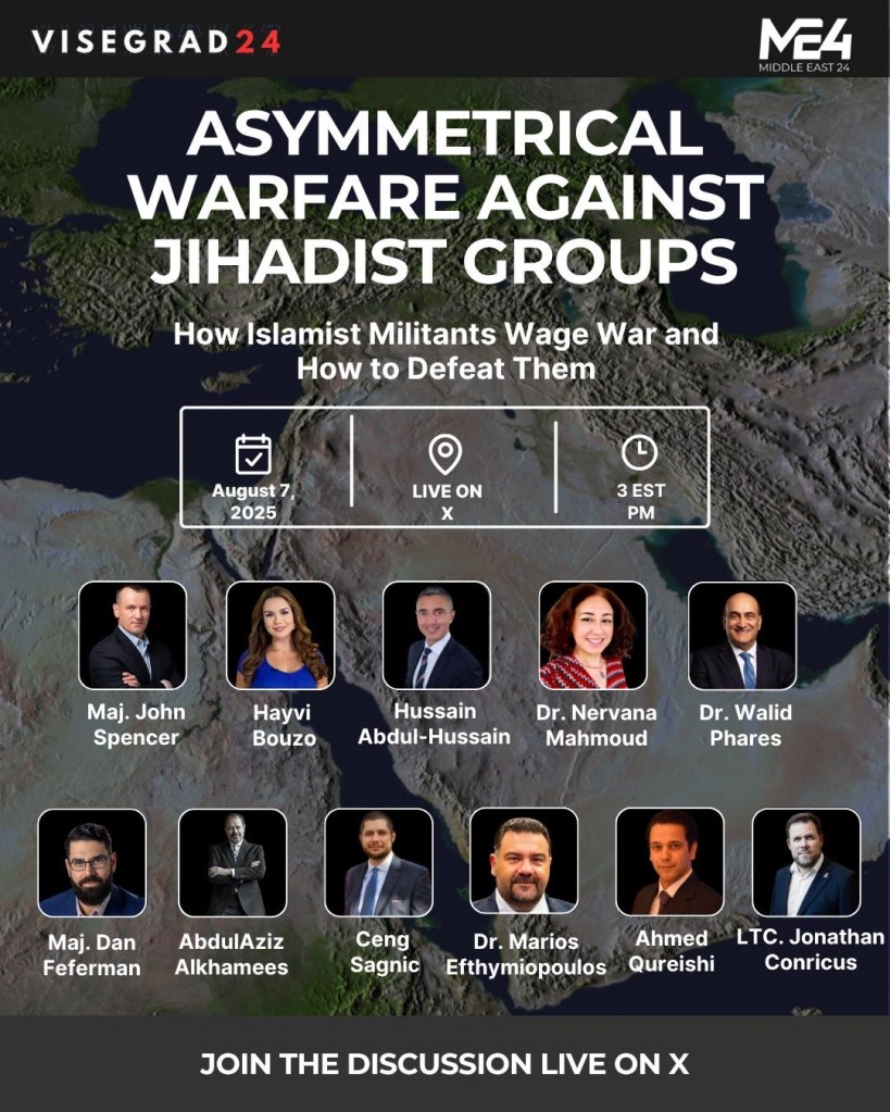 It was a pleasure to join a group of experts, on X Space to discuss asymmetrical warfare against Islamist groups. The space was organised by @visegrád24, who is one of X prominent accounts, with 1.4 million followers, in partnership with Middle East 24 @MiddleEast_24, a new platform of many prominent ME experts.