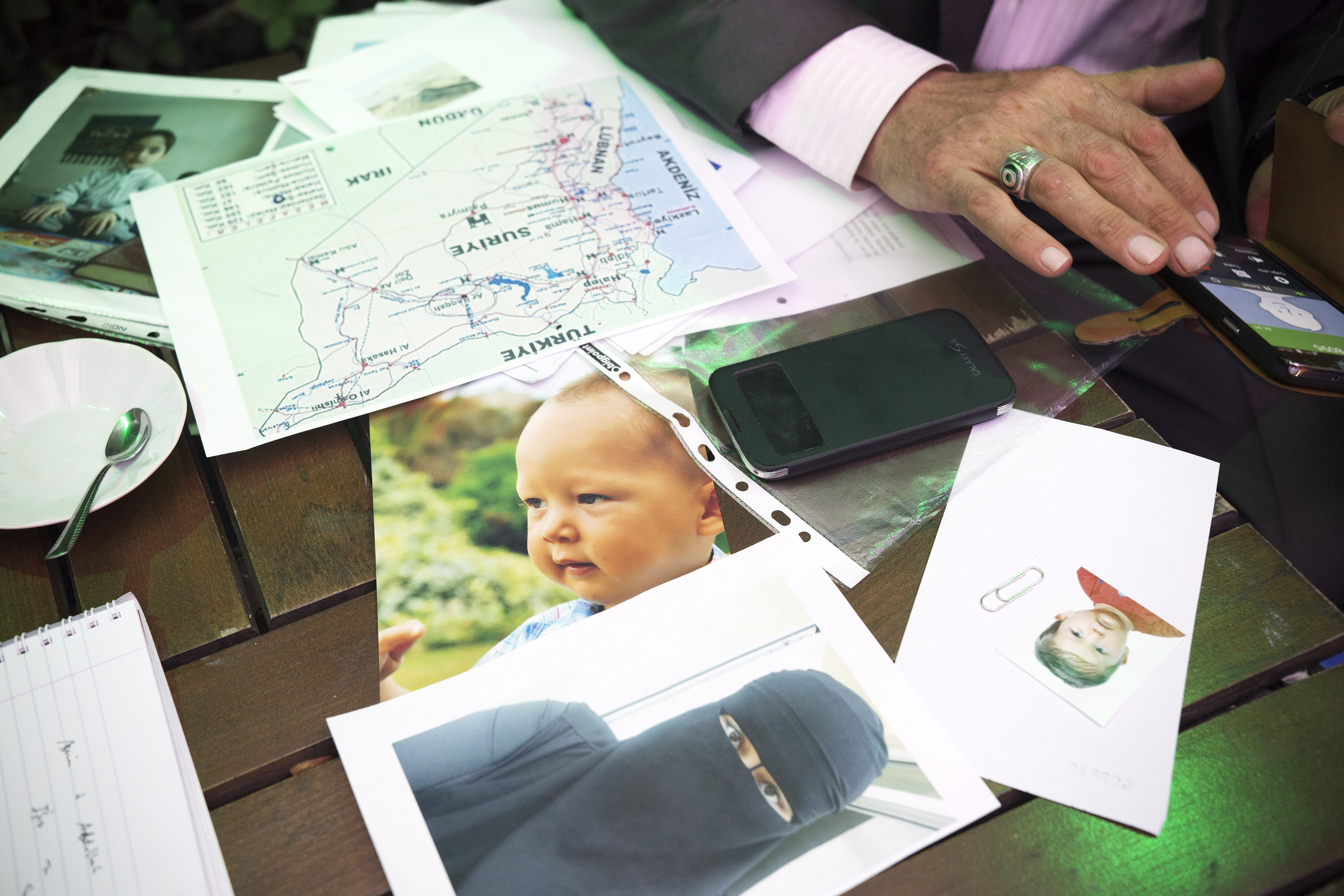 Şahin Aktan keeps a file to help him in his hunt for his ex-wife Svetlana, who took their three-year-old son Destan to live under ISIS rule in Syria’s Raqqa province in July. (Photograph by Fatih Pinar).