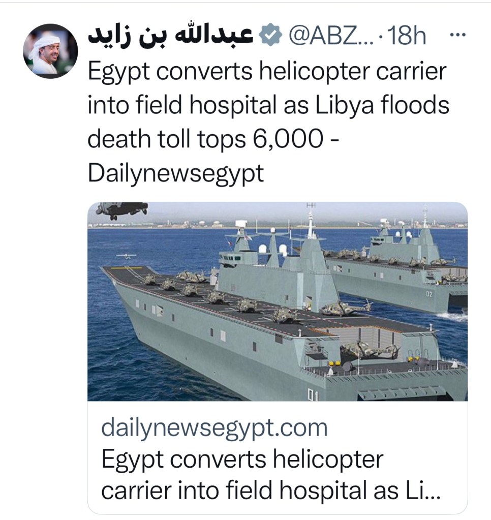 - Egypt converts helicopter carrier into field hospital as Libya floods death toll tops 6,000